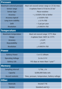 - Battery life varies with temperature and sampling interval. Specified at 125ºC & 5 second sampling interval